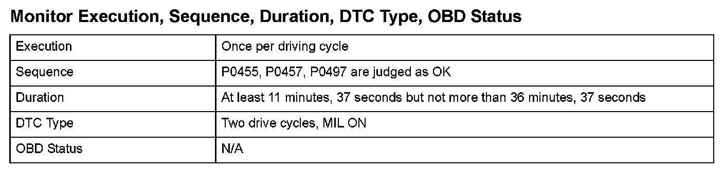 Monitor Execution, Sequence, Duration, DTC Type, OBD Status