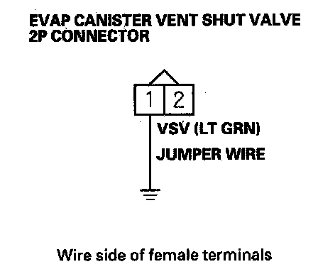 15. Connect EVAP canister vent shut valve 2P connector terminal No. 1 to body ground with a jumper wire.