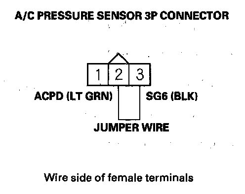 11. Remove the jumper wire from the A/C pressure sensor 3P connector.
