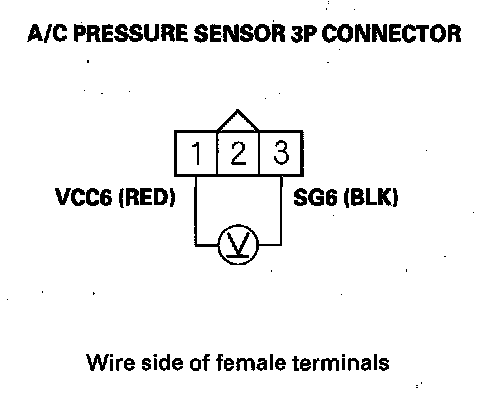 13. Measure voltage between A/C pressure sensor 3P connector terminals No. 1 and No. 3.