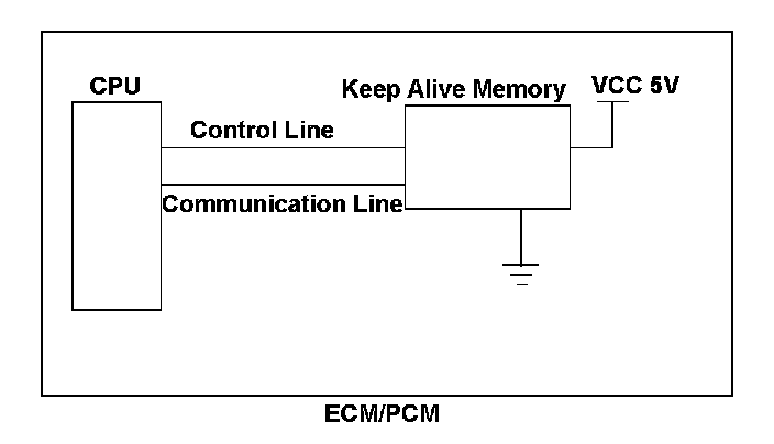 The engine control module (ECM)/powertrain control module (PCM) is equipped with a keep-alive memory. The data (control learn data etc) for powertrain control and information (Vehicle Identify Number (VIN) etc) related to the vehicle control is stored in the keep alive memory, so that it can be maintained even when the power is not supplied to the ECM/PCM such as when the battery is disconnected. When the power is restored to the ECM/PCM, the CPU retrieves the stored information from the keep alive memory, but when the data retrieval process is not finished normally, a malfunction is detected and a DTC is stored.