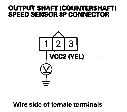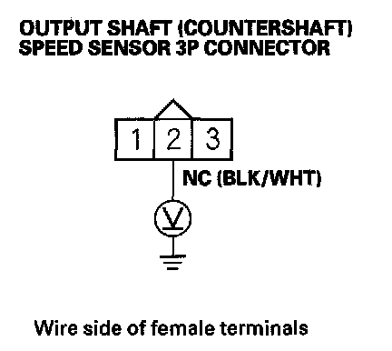 8. Measure voltage between output shaft (countershaft) speed sensor 3P connector terminal No. 2 and body ground.