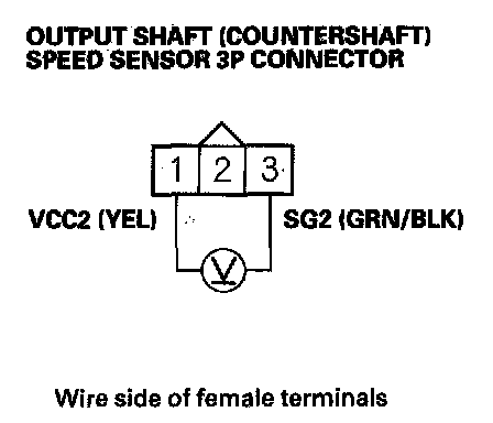 9. Measure voltage between output shaft (countershaft) speed sensor 3P connector terminals No. 1 and No. 3.