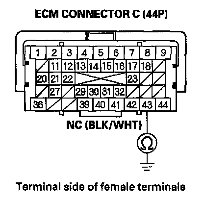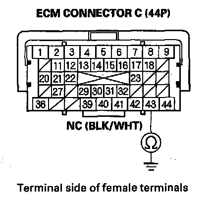 15. Check for continuity between ECM connector terminal C43 and body ground.