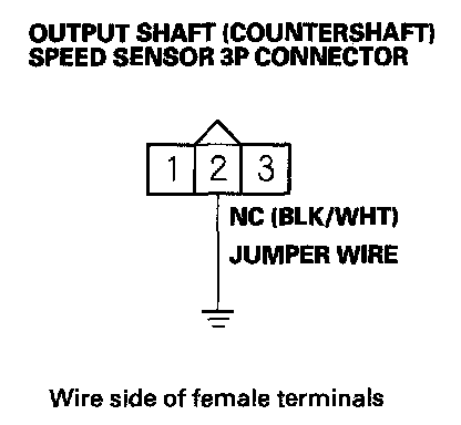 14. Connect output shaft (countershaft) speed sensor 3P connector terminal No. 2 to body ground with a jumper wire.