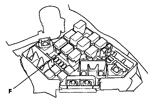 6. Remove the ETCS control relay (F) from the under-hood fuse/relay box.