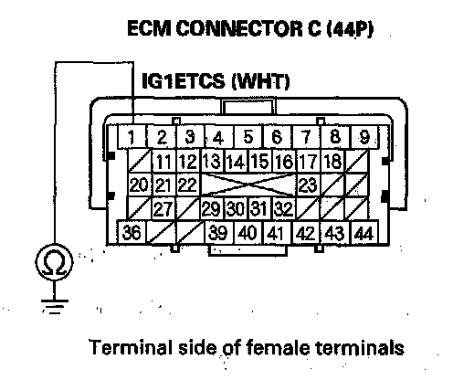 20. Check for continuity between ECM connector terminal C1 and body ground.
