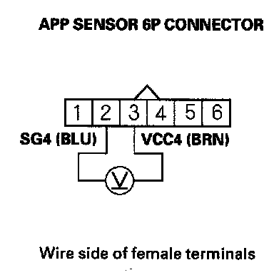 6. Measure voltage between APP sensor 6P connector terminals No. 2 and No. 3.