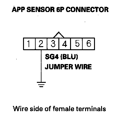 10. Connect APP sensor 6P connector terminal No. 2 to body ground with a jumper wire.