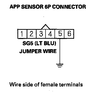 10. Connect APP sensor 6P connector terminal No. 5 to body ground with a jumper wire.
