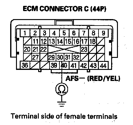 YES - Check for poor connections or loose terminals at the A/F sensor (Sensor 1) and the ECM, then go to step 1. If the connector and terminal fits are OK, go to step 17.