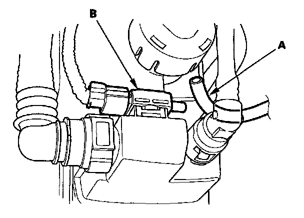 17. Disconnect the air tube (A) from the FTP sensor (B).