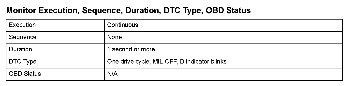 Monitor Execution, Sequence, Duration, DTC Type, OBD Status