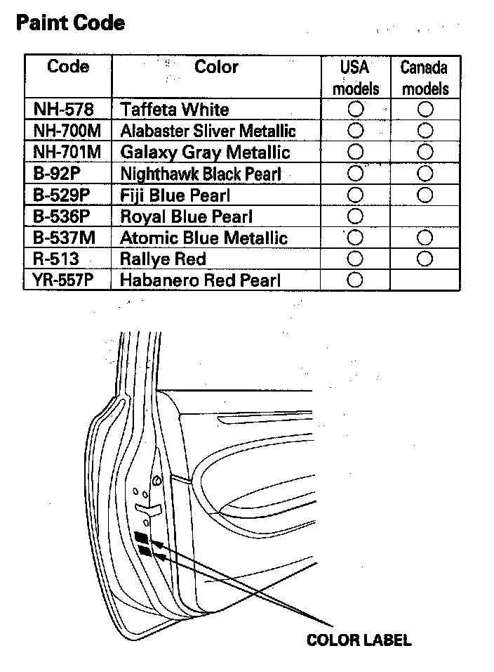 Paint Code (2-door Model):