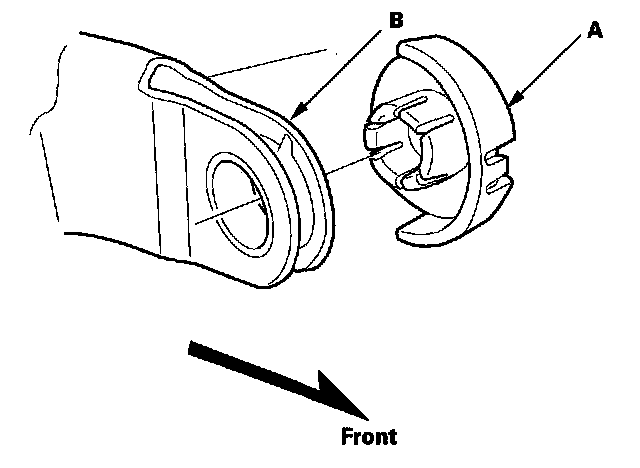 3. If necessary, remove the bushing (B).