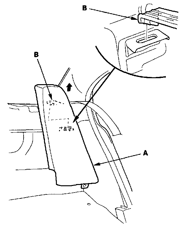 4. Lift the seat side bolster (A) up to release the hook (B), then remove the seat side bolster.