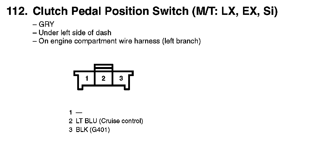 112. Clutch Pedal Position Switch (M/T: LX, EX, Si):