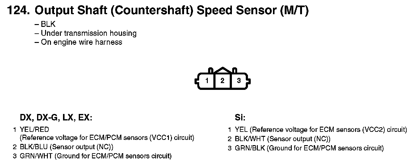 124. Output Shaft (Countershaft) Speed Sensor (M/T):