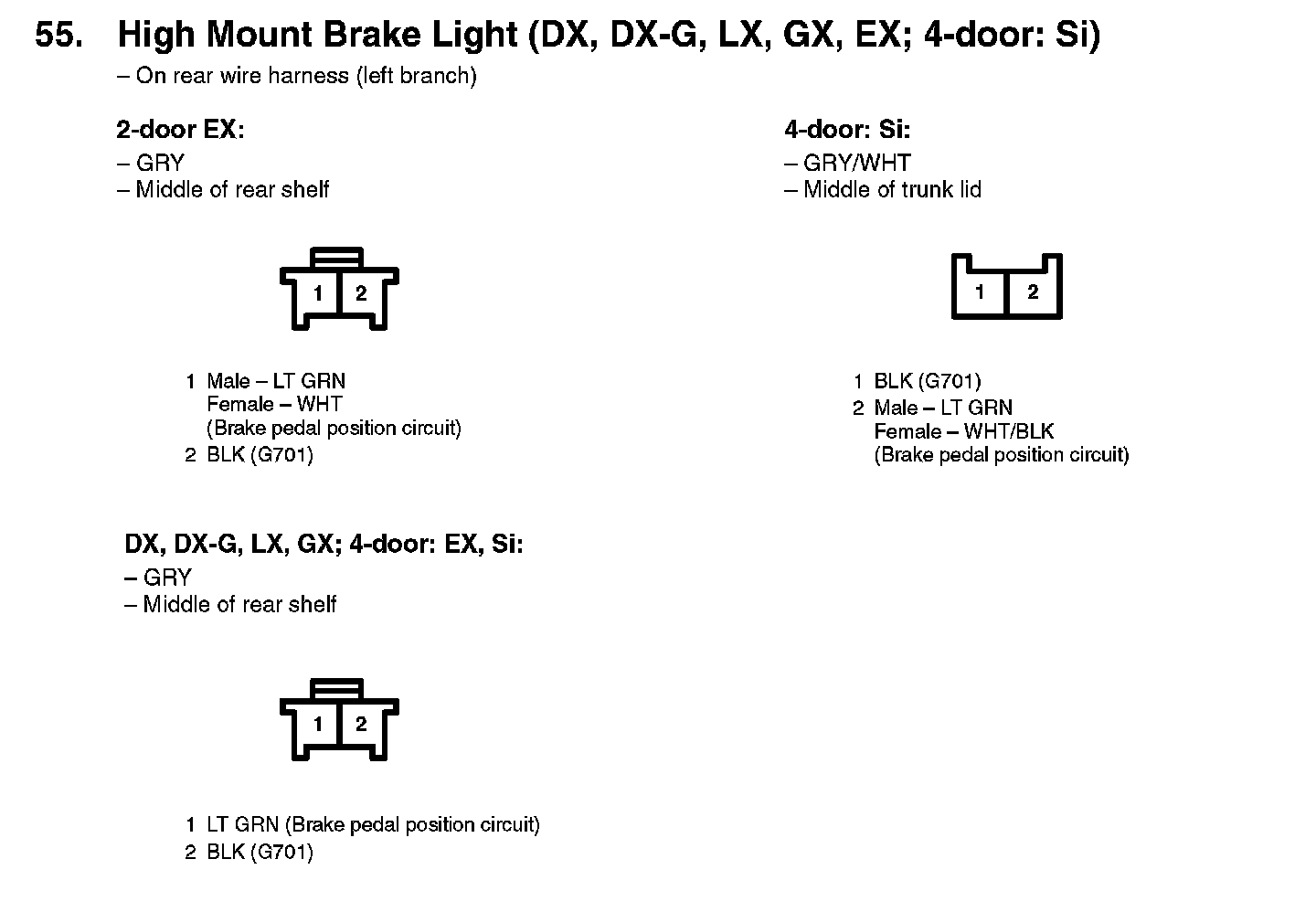 55. High Mount Brake Light (DX, DX-G, LX, GX, EX; 4-door: Si):