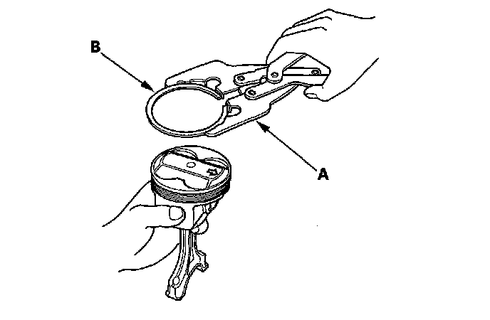 5. Measure the piston ring end-gap (B) with a feeler gauge: