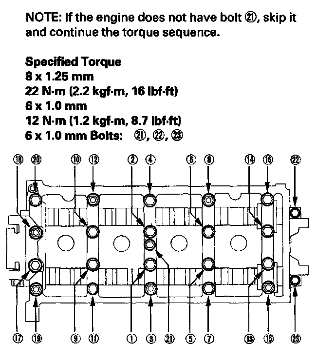 8. Install the camshaft holders, then tighten the bolts to the specified torque as shown in step 2.
