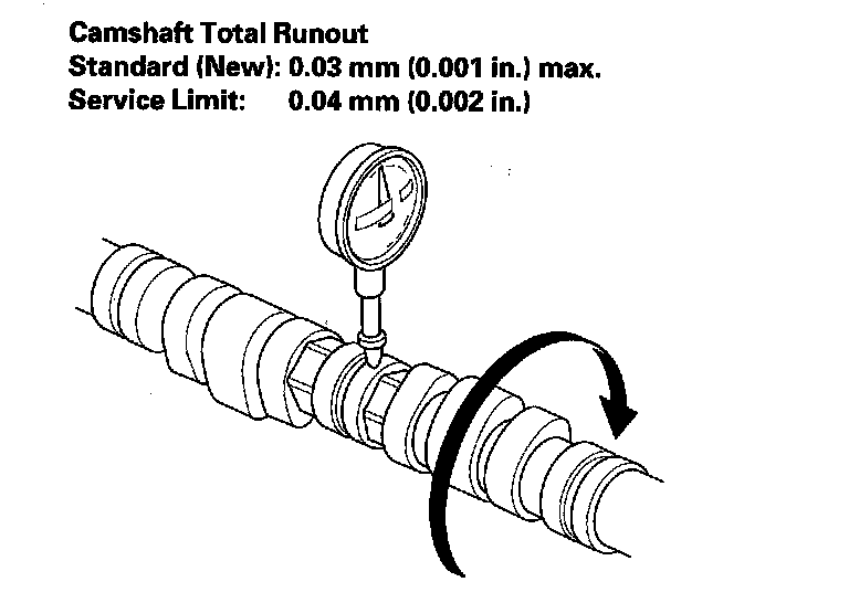 ^ If the total runout is beyond the service limit, replace the camshaft and recheck the camshaft-to-holder oil clearance. If the oil clearance is still beyond the service limit, replace the cylinder head.