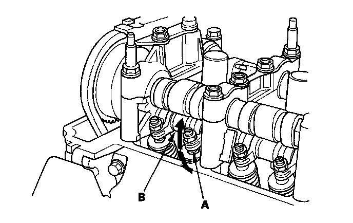 ^ If the mid and primary rocker arms do not move together with the secondary rocker arm, remove the mid, primary, and secondary rocker arms as an assembly, and check that the pistons in the rocker arms move smoothly. If any rocker arm needs replacing, replace the mid, primary, and secondary rocker arms as an assembly, then retest.