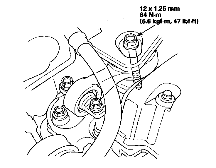 6. Raise the vehicle on the lift to full height, and tighten the front mount mounting bolt.