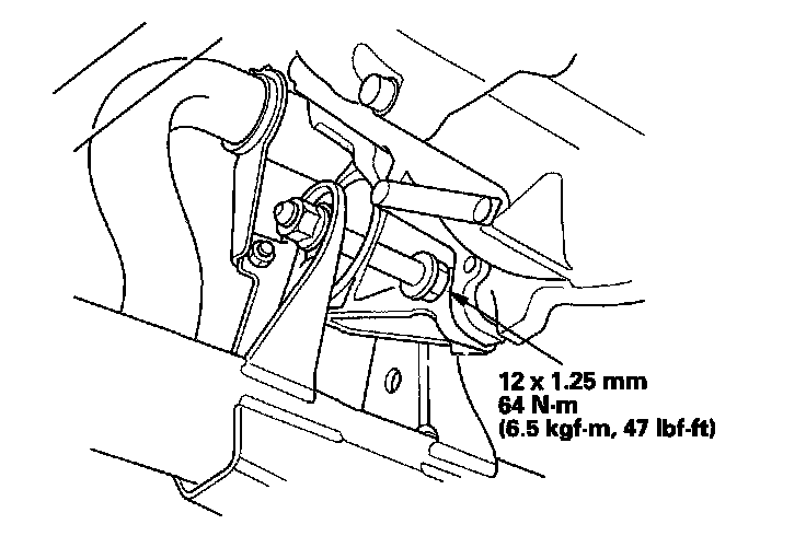 9. Raise the vehicle on the lift to full height, and tighten the front mount mounting bolt.