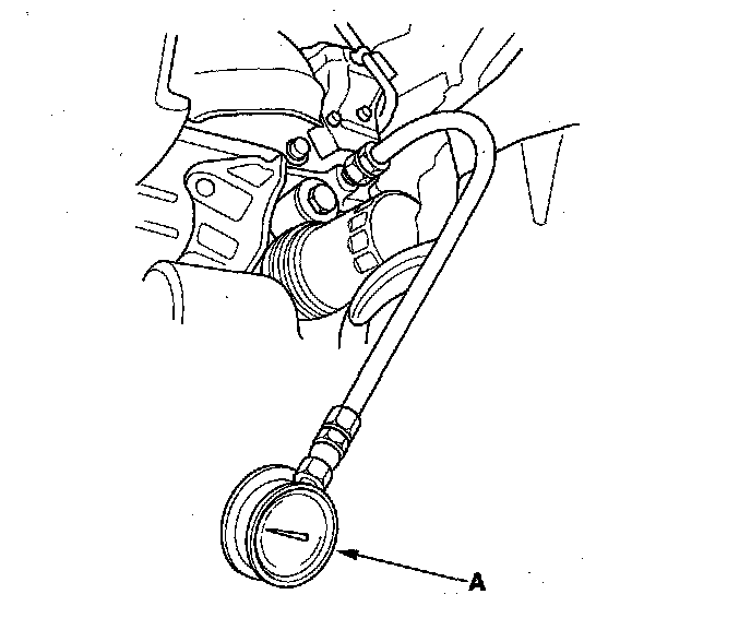 1. Remove the engine oil pressure switch, and install an oil pressure gauge (A).
