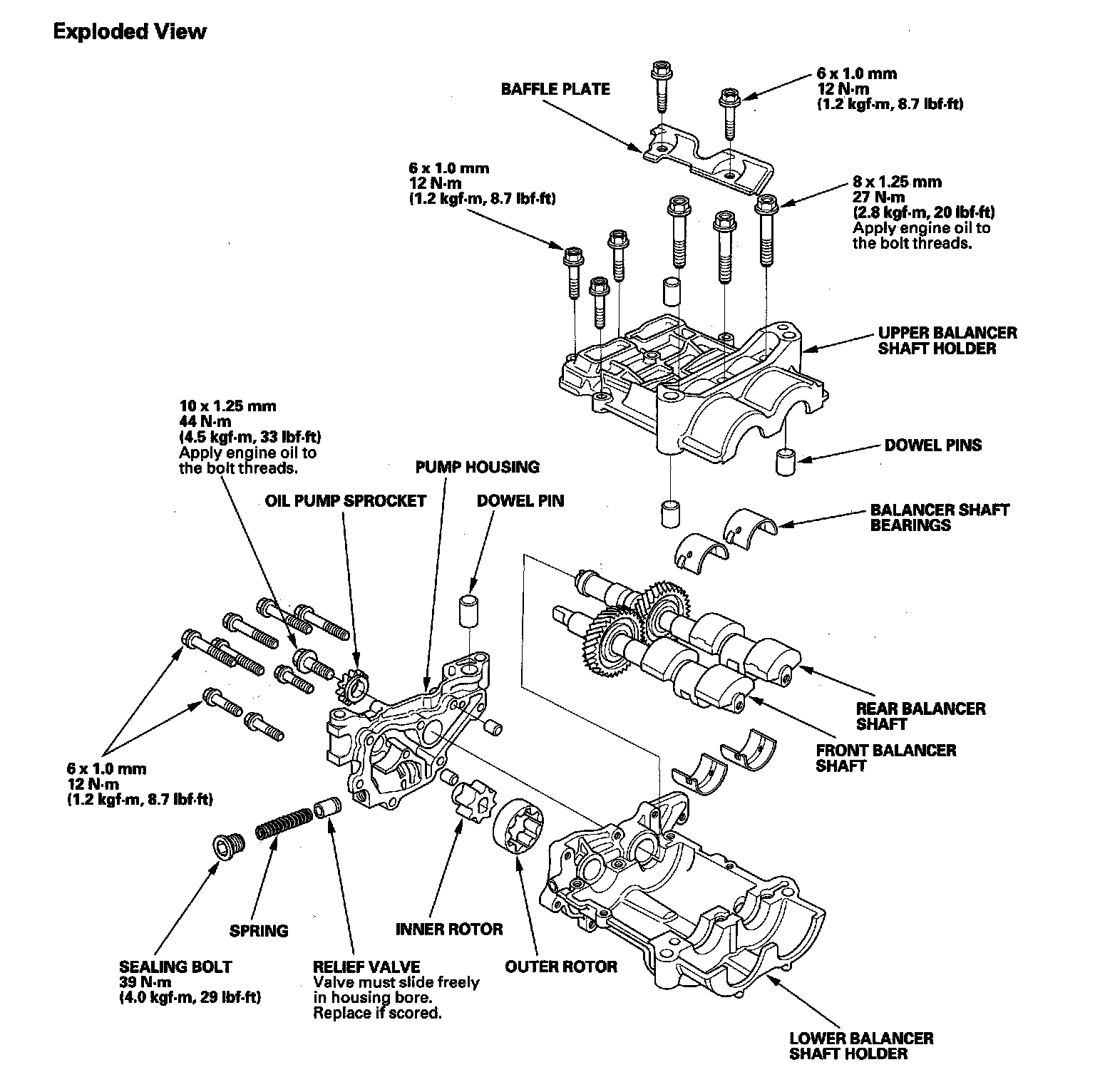 8. Reinstall the bearings and upper balancer shaft holder, then torque the bolts.