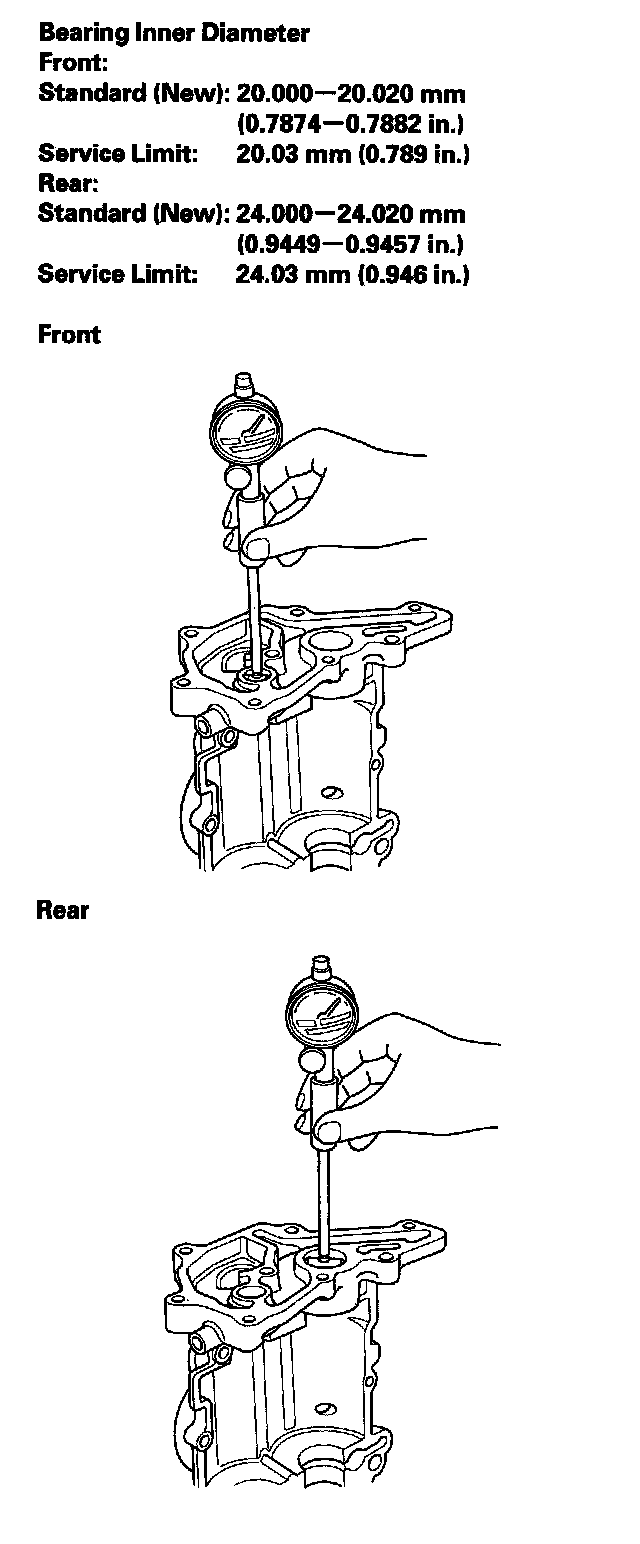 4. Measure the inner diameter of the No. 1 bearing for the front balancer shaft hole and the rear balancer shaft hole.