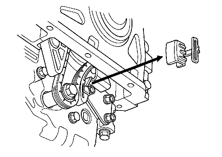 8. Squeeze the new oil pump chain tensioner (A), then install the set clip (B) on it as shown.