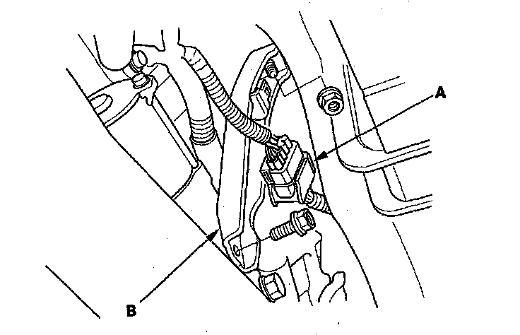 10. Remove the connector (A), then remove the intake manifold bracket (B).