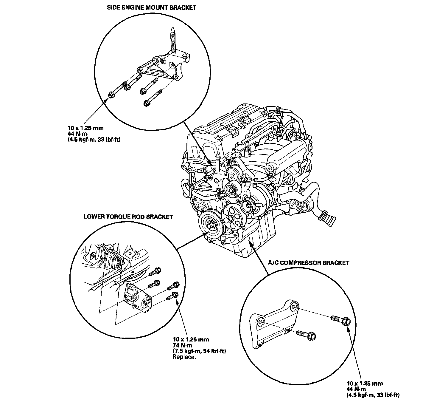 6. Tighten the new side engine mount bracket mounting bolt and nut.