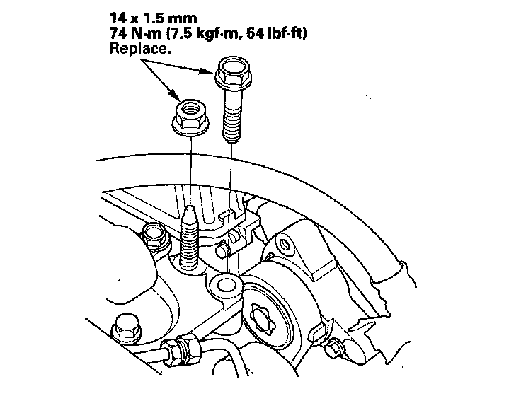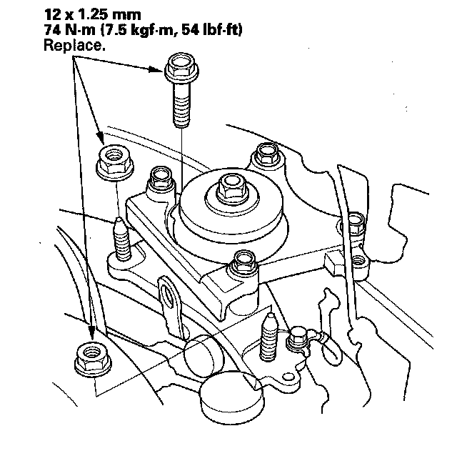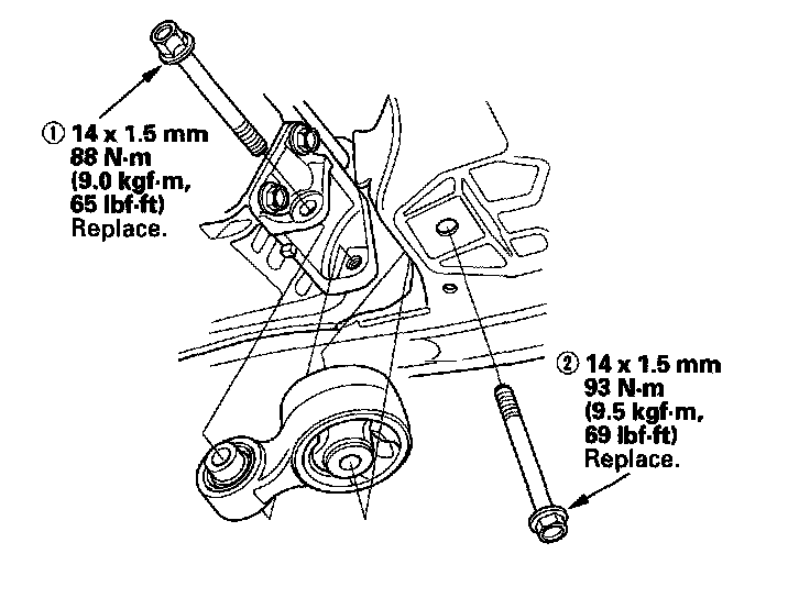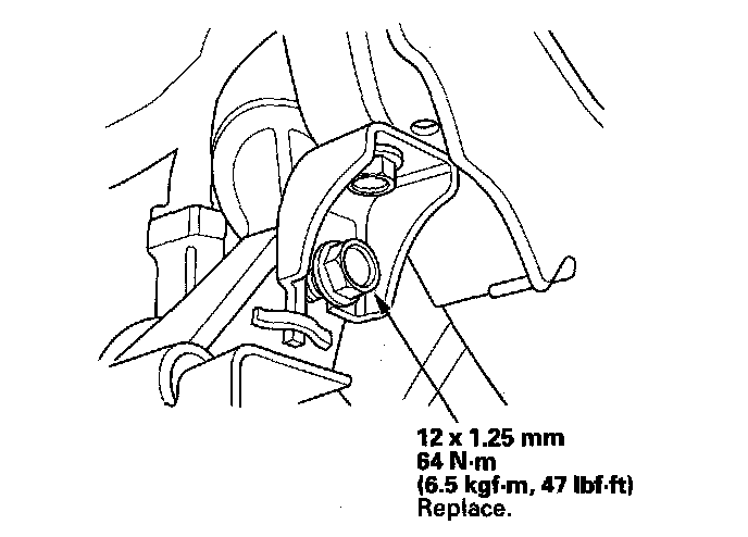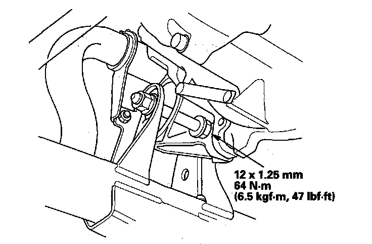 7. Tighten the new transmission mounting bolt and nuts.