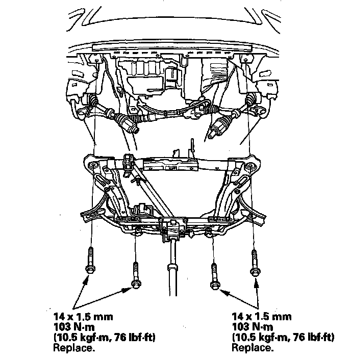 13. Loosely install the new front subframe mounting bolts.