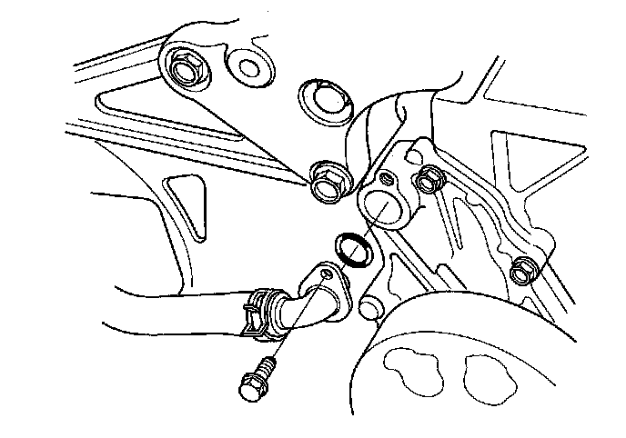 7. Remove the oil cooler hose joint pipe from the water pump.