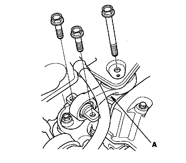 13. Remove the ground cable (A), then remove the side engine mount bracket (B).