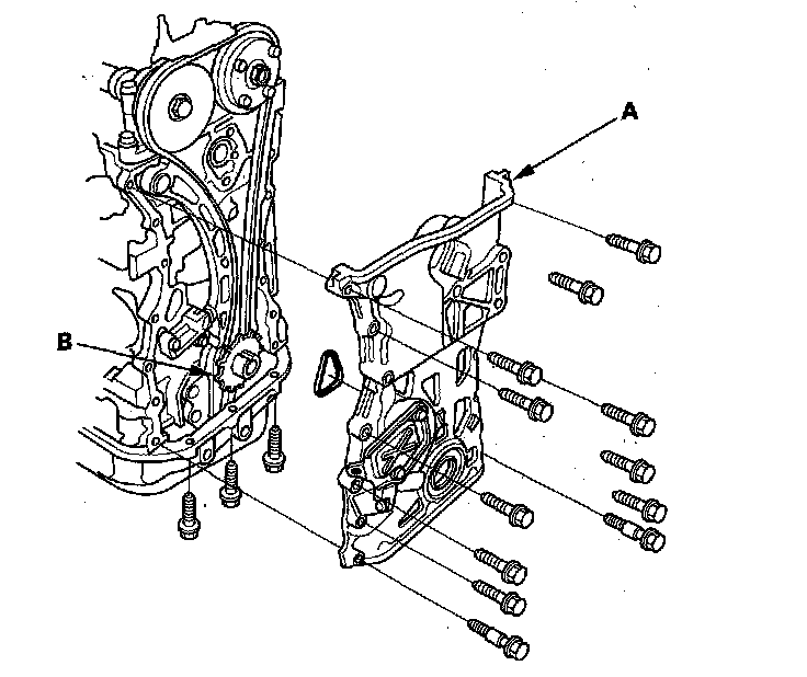 15. Remove the cam chain case (A), then remove the CKP pulse plate (B).
