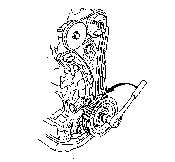 17. Turn the crankshaft counterclockwise to compress the auto-tensioner.