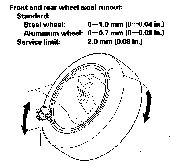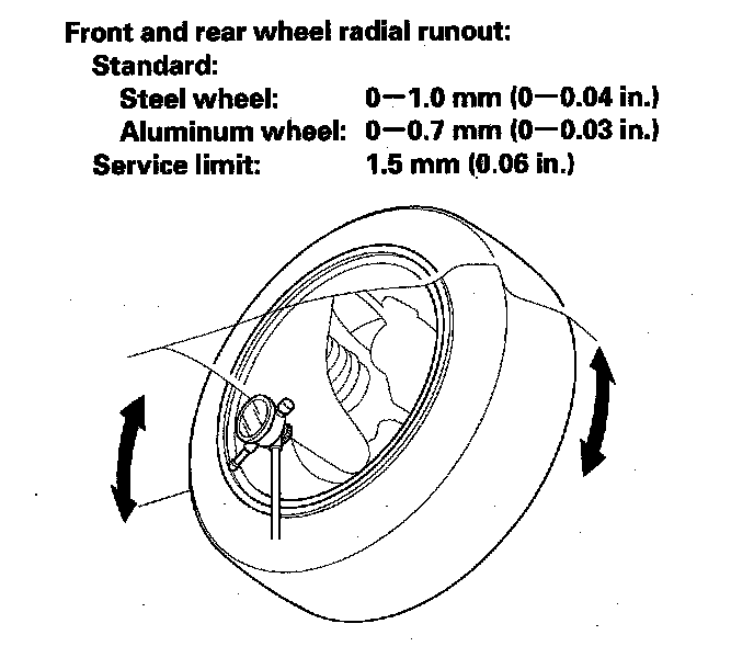 6. If the bearing end play is within the specification but the wheel runout is more than the service limit, replace the wheel.