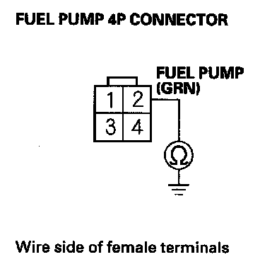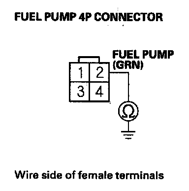 61. Check for continuity between fuel pump 4P connector terminal No. 2 and body ground.