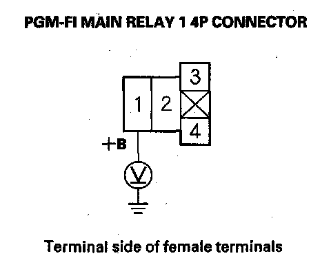 69. Measure voltage between PGM-FI main relay 1 4P connector terminal No. 3 and body ground.