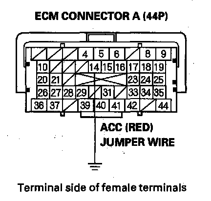 13. Momentarily connect ECM connector terminal A14 to body ground with a jumper wire several times.
