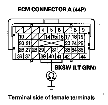 8. Check for continuity between ECM connector terminal A40 and body ground.