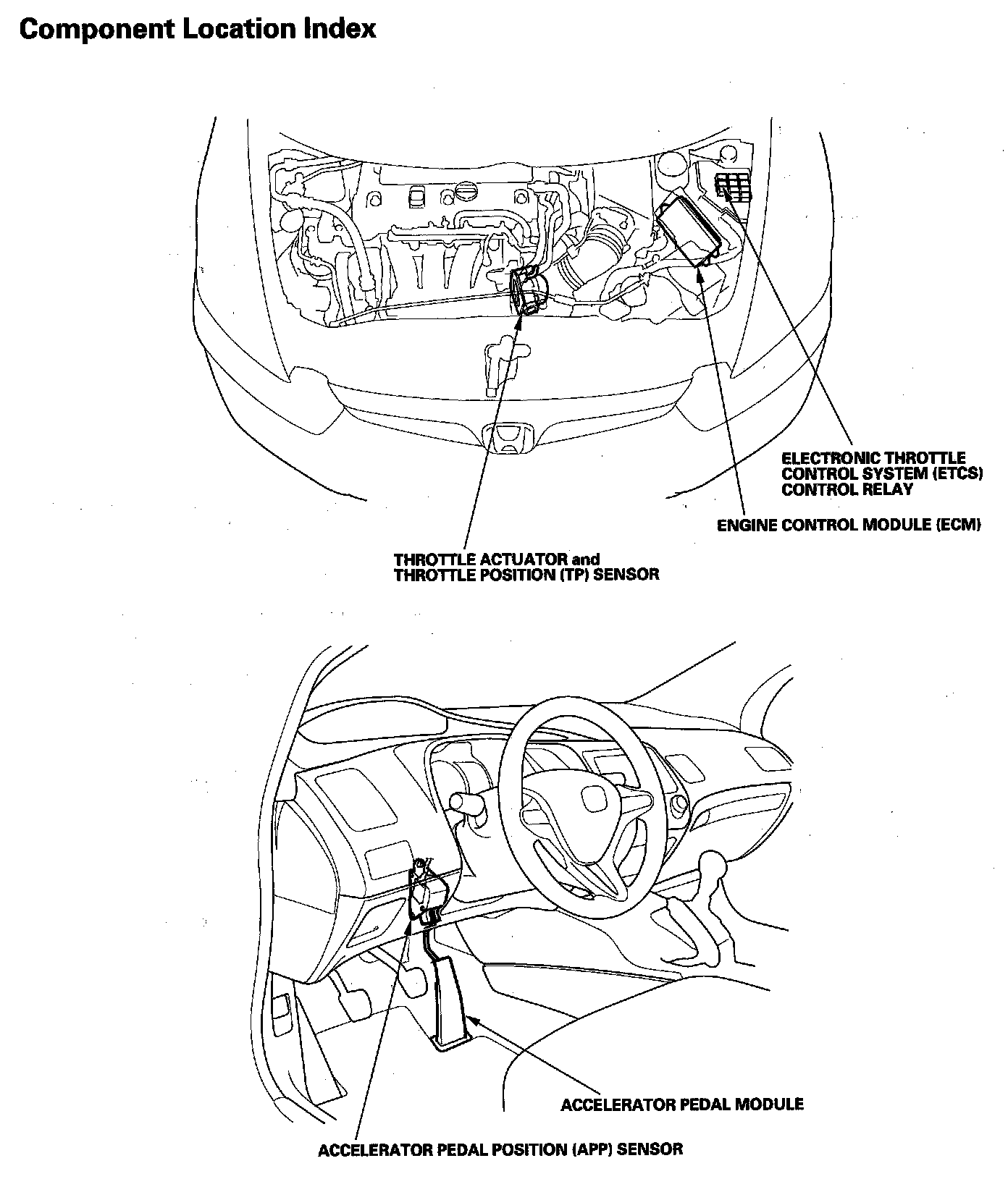 Electronic Throttle Control System Component Location Index: