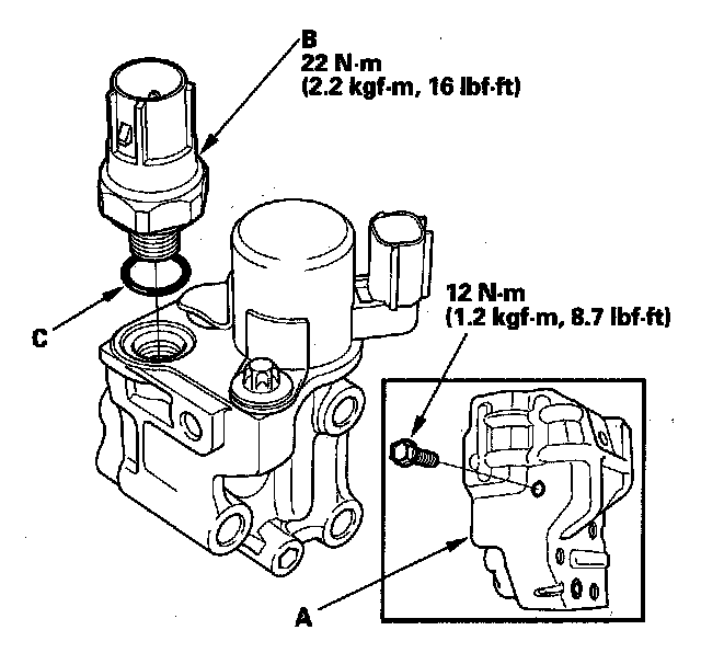 4. Install the parts in the reverse order of removal with a new O-ring (C).