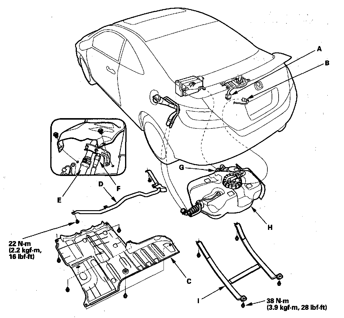 3. Remove the cover (C), and the EVAP canister guard pipe (D).