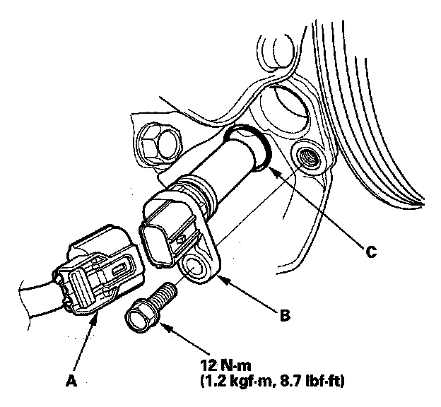 3. Install the parts in the reverse order of removal with a new O-ring (C).